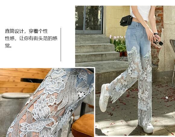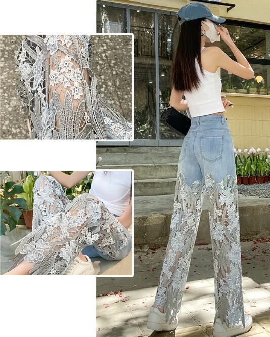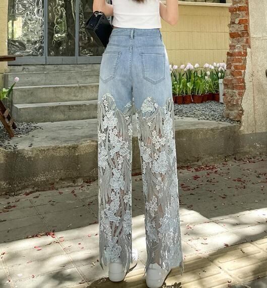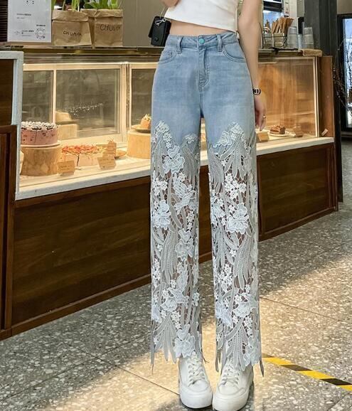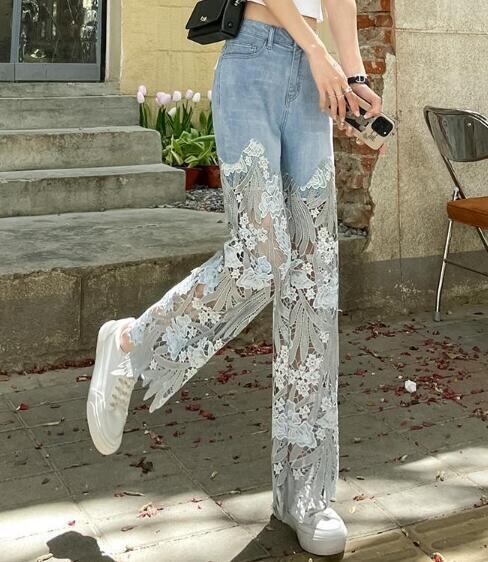 【2025新作商品♪】レディース おしゃれ レースデニムズボン S-3XL