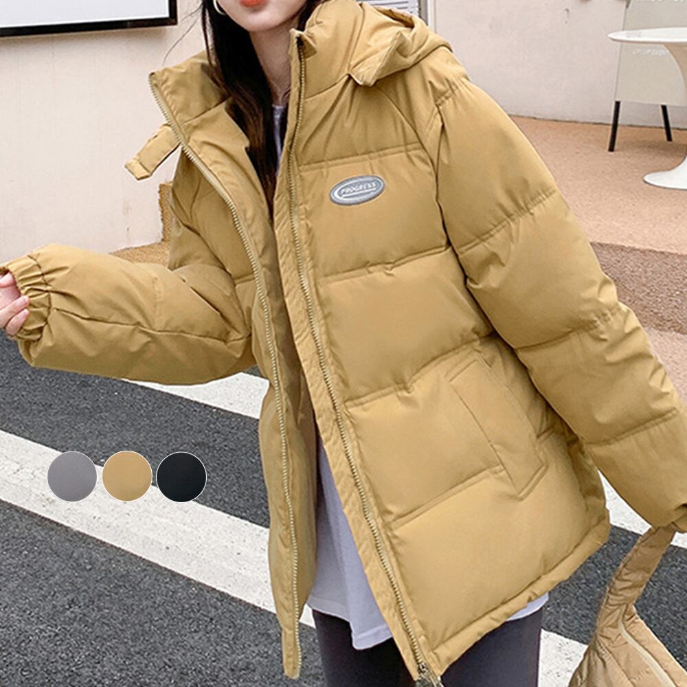 レディース おしゃれ ロゴ フェイクダウンコート 冬アウター 防寒防風 中綿コート あったかい ジャンパー 韓国 キルト