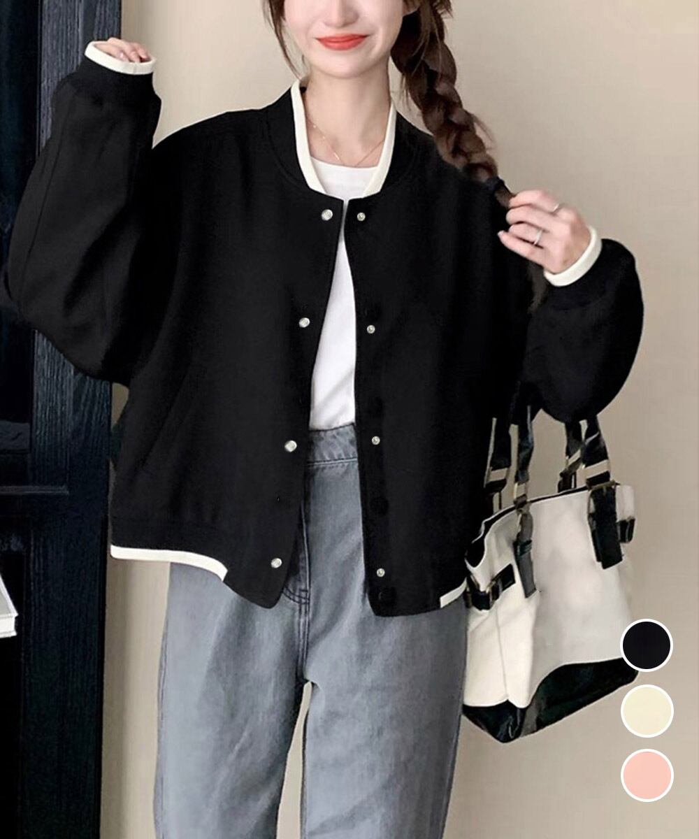 シングルブレストジャケット ショートジャケット 大人カジュアル 通勤通学 ブルゾン スタジャン 無地 韓国ファッション