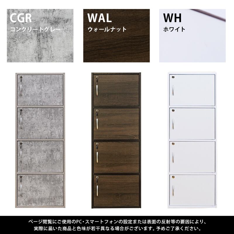 ウォールナット(WAL)、ホワイト(WH)、コンクリートグレー(CGR)の3色展開です。