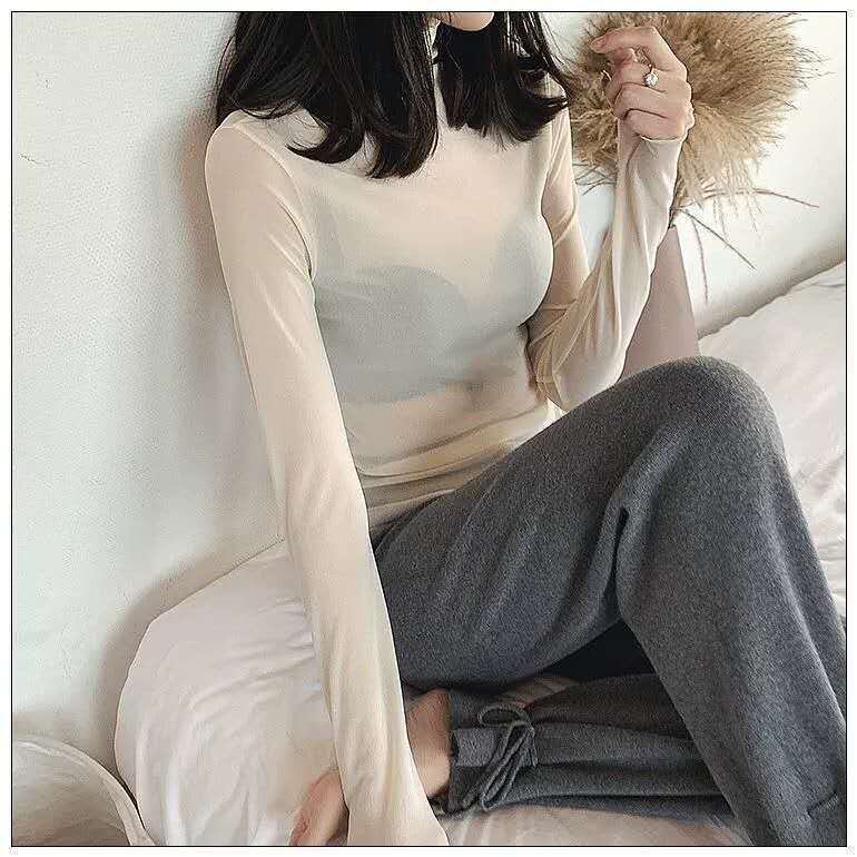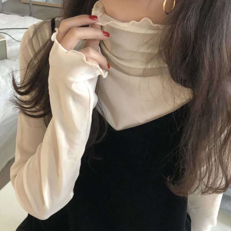 春夏 レディース トップス 長袖 レース タートルネック ファッション 4色 美ライン