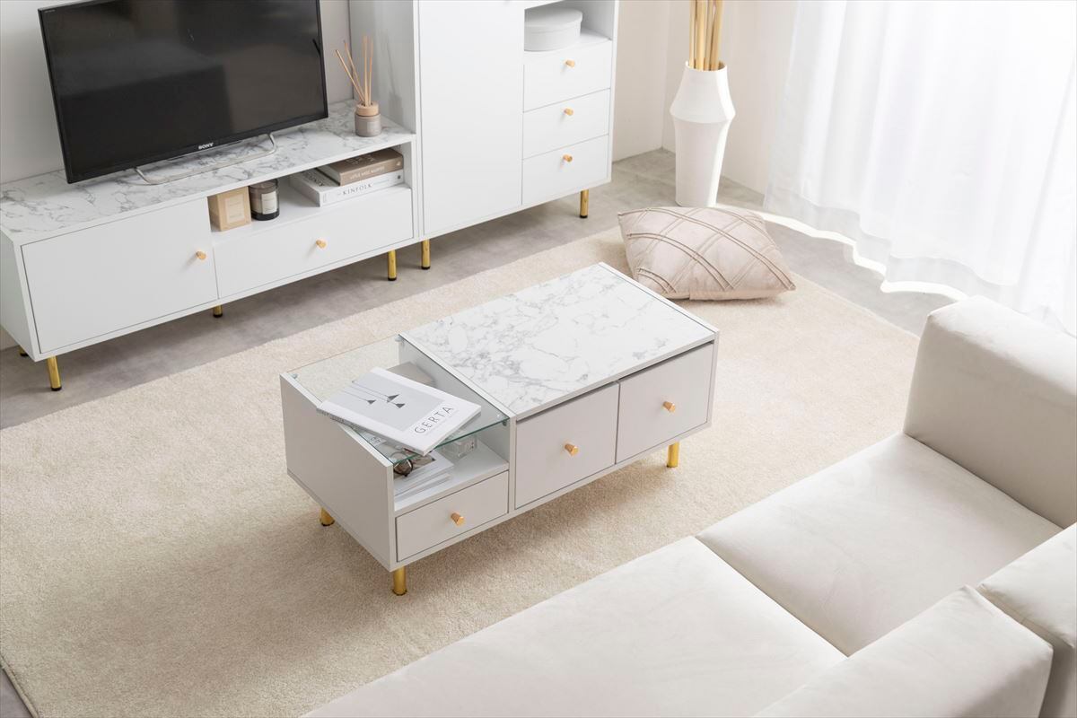 天板の大理石柄とゴールドのあしらいが特徴の『Camila(カミラ)』シリーズのドレッサーテーブル