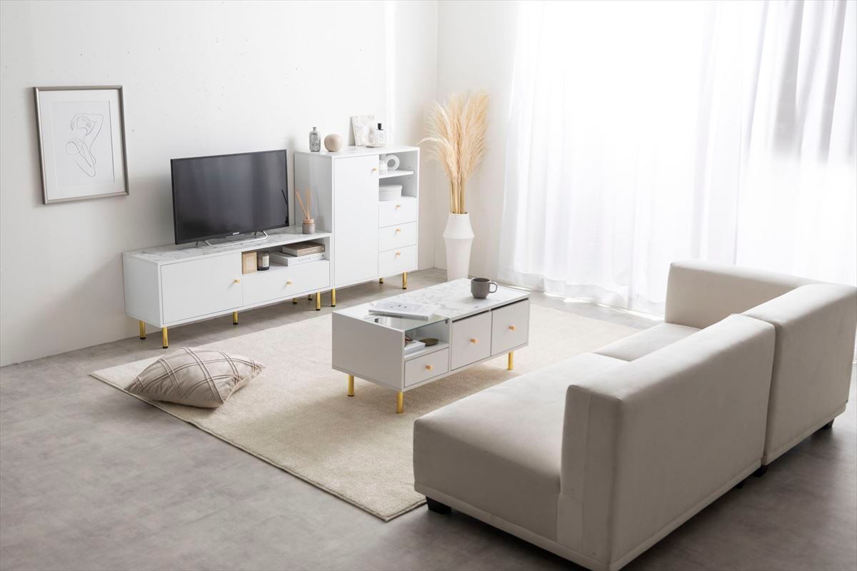 【耐荷重】天板:約8kg、ガラス天板:約5kg、オープン収納:約6kg、引き出し(左):約5kg、引き出し(中央):約5kg、引き出し(右):約5kg、フロントスペース:約6kg